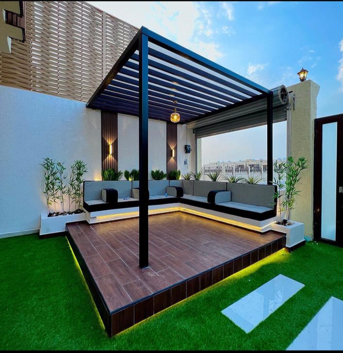 سواء كان مجلساً عائلياً أو مساحة استقبال فاخرة، نمنحك تصميماً أنيقاً وعملياً يضيف قيمة مميزة لحديقتك أو منزلك.