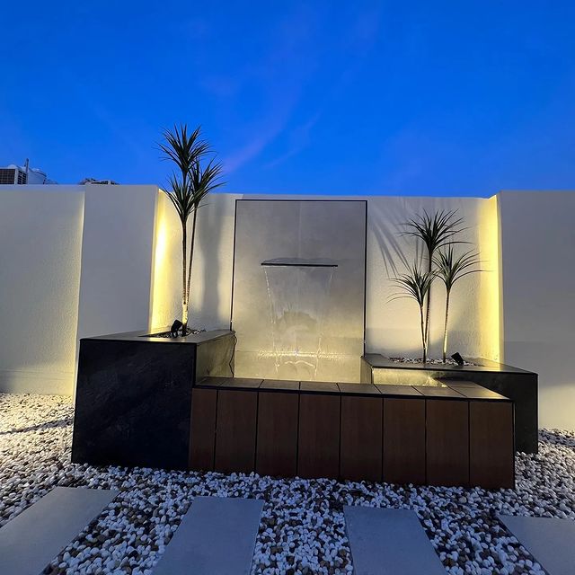 💧 ثانياً: تصميم الشلالات والنوافير الحديثة